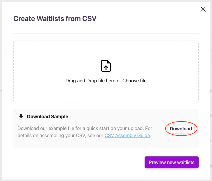 Now, you can create multiple waitlists by hitting Upload in the Waitlists tab of the dashboard.